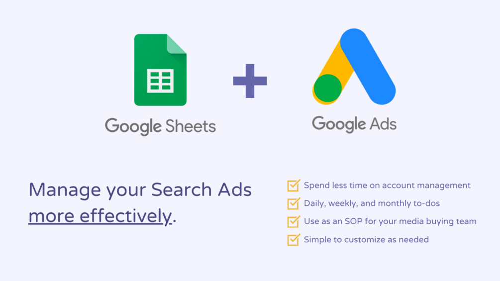 You'll get my Search Optimization Checklist for Google Sheets that will help take the guesswork out of managing your Google Ads accounts.